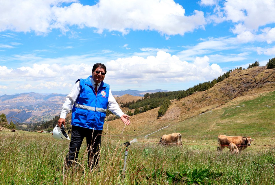 “Somos 116 usuarios acá en este sistema de riego por aspersión puro y alto. Para mejorar en algunas partes la siembra de papas, hortalizas, cebollas, cualquier producto relacionado con las plantas y en primer lugar es el pasto para la lechería”, declaró.