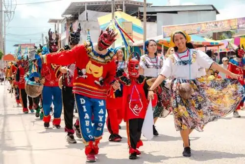 Dentro de la programación destacan eventos como la elección de la reina del carnaval, concursos de comparsas y alegorías, bailes sociales, pandillas y el tradicional corte de umshas, con la presencia infaltable del Ño Carnavalón. La danza de los diablos de Rioja transmite un mensaje místico sobre la lucha entre el bien y el mal, con una comitiva que puede reunir hasta 80 diablos, aunque solo 12 ejecutan la danza principal, animando al público con bromas y acrobacias. Tras la simbólica muerte del Ño Carnavalón, sus “viudas” -personajes representados por varones- protagonizan un divertido juicio por la herencia, cerrando el ciclo festivo entre risas y algarabía.