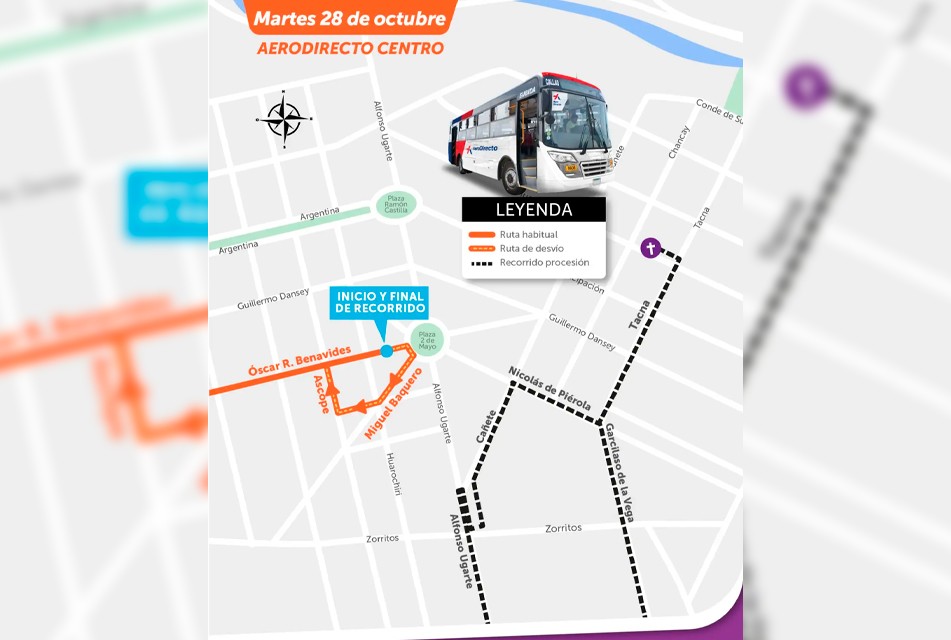 Este servicio iniciará y culminará su recorrido en la Plaza 2 de Mayo cuando la procesión se encuentre en la av. Nicolás de Piérola, en el centro de Lima (Ver mapa).