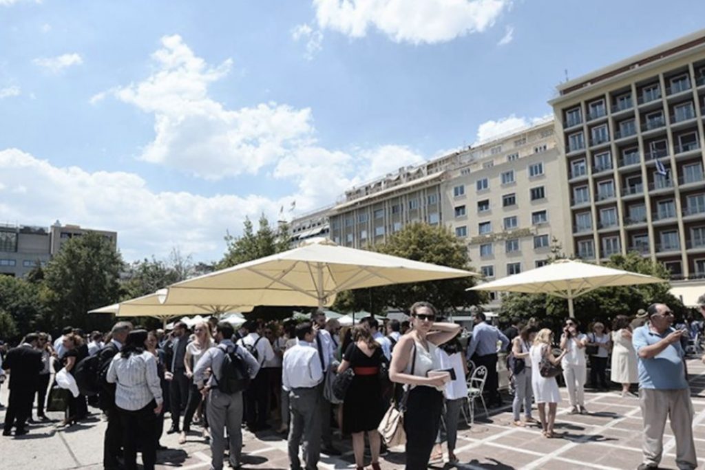 Multitud de personas salieron a las calles en el centro de Atenas, preocupadas por el terremoto, que se sintió con fuerza por su poca profundidad y duró alrededor de unos 15 segundos.